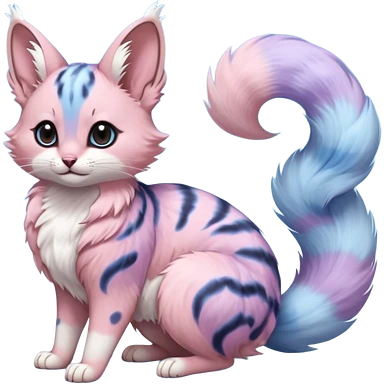 realistic fur with random dark markings beautiful elegant pretty precious cute Fakémon-Pokémon-opossum-feline-serval-caracal-chinchilla-Furret-Minccino-hybrid-creature with a big fluffy bushy tail (full body) emoji | AI Emoji Generator