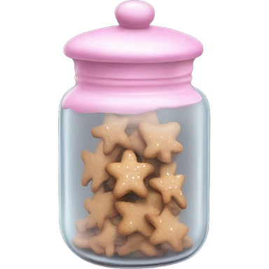 Realistic glass cookie jar with light pink lid full of gingerbread cookies isolated. emoji | AI Emoji Generator