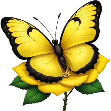 REALISTIC detailed black rose, bright yellow butterfly resting on petals emoji