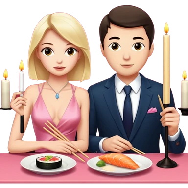 realistic photo of Alex Warren with a beautiful victoria secret model on a candle lit sushi date emoji