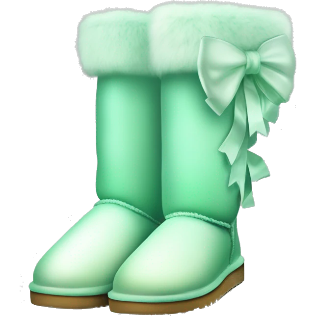 Realistic gradient mint green ugg boots with fur and light mint green bow. emoji | AI Emoji Generator