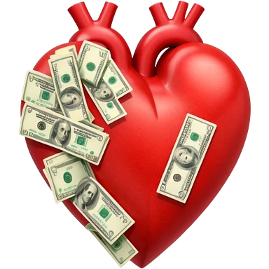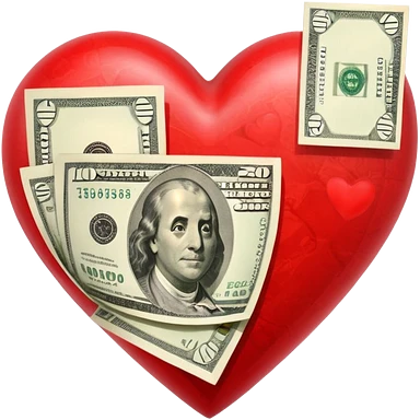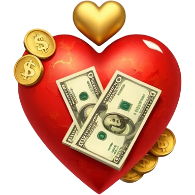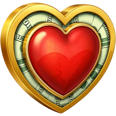 "Realistic HD red heart fused with money, cash integrated into the heart, glossy texture, clean white background." emoji