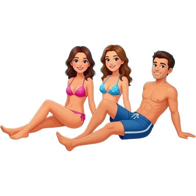 on tropical island Two lesbian bikini women and 1 man on a deserted island emoji