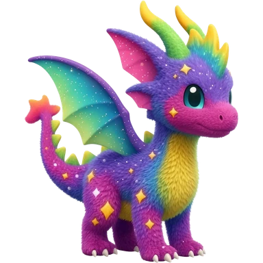 Randomly-colored gradients-colored cute fuzzy realistic glittery Randomly-faerie-drake-colored sparkly exotic drake-Trico-Fakémon-creature emoji
