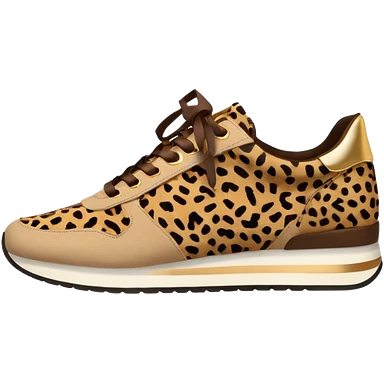 Realistic, isolated, side view, womens trendy cheetah print sneaker, with gold detailed elements emoji