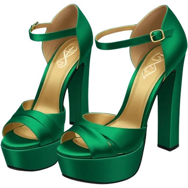 Hyper Realistic isolated side view, emerald green satin, chunky platform heels emoji
