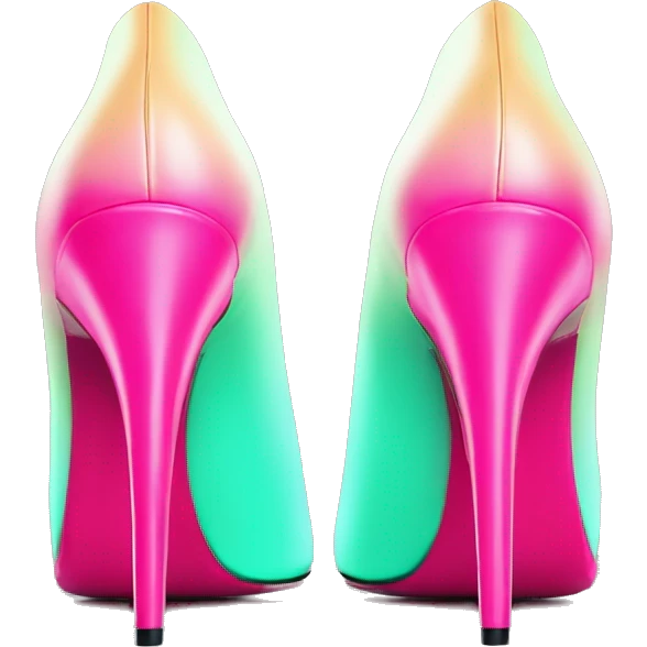 Realistic isolated top view pair of pointed toe hot pink to mint green ombre high heel shoes. emoji | AI Emoji Generator