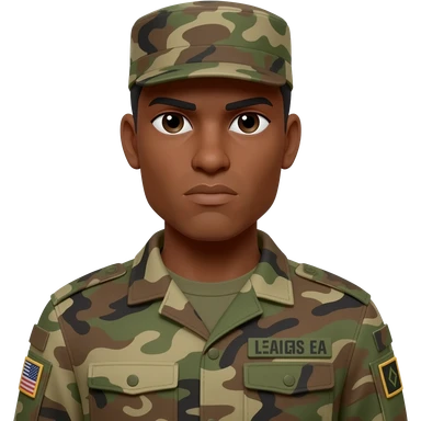Make the soldier look more serious, make his black complexion, lighter skin to caramel brown emoji