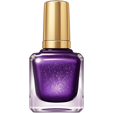 Ultra realistic, glitter dark plum color nail polish, translucent glass bottle, gold color top lid emoji