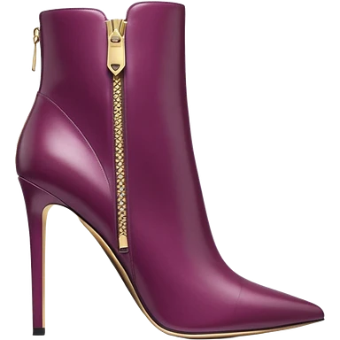 Hyper Realistic isolated side view, Michael Kors plum color, luxury stiletto ankle bootie boots, gold side zipper emoji