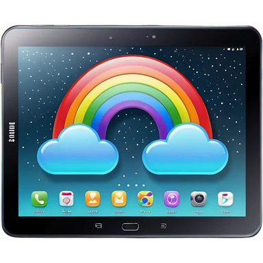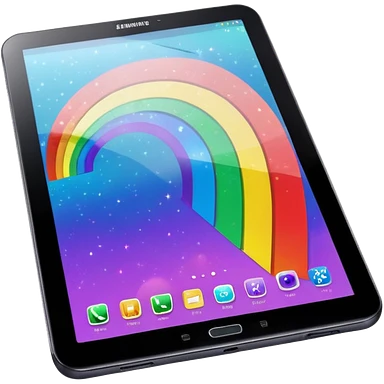 Realistic Samsung galaxy tablet, with a black holographic cover, that has a rainbow glitter effect emoji
