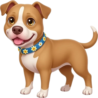 Tan pit mix with pink nose and white stripe down her nose and gold eyes happy pup emoji