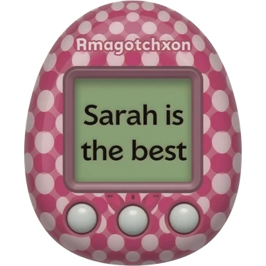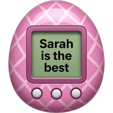 make ma pink tamagotchi that says Sarah is the best on the screenw ith some cool pattern on the pink otside emoji