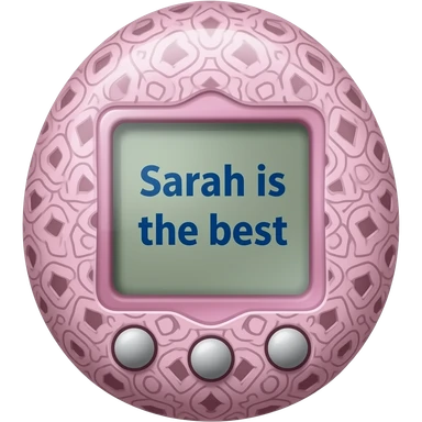 make ma pink tamagotchi that says Sarah is the best on the screen in black ith some cool pattern on the pink otside emoji