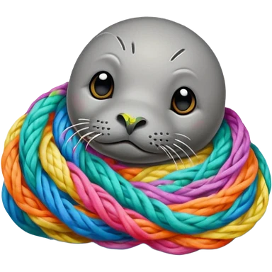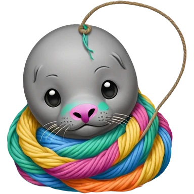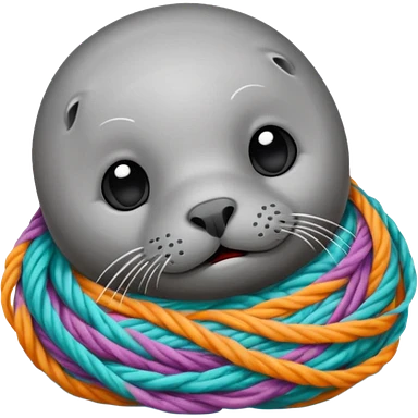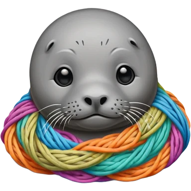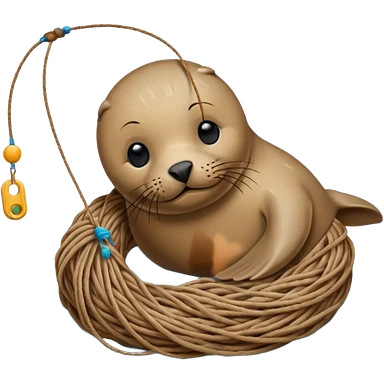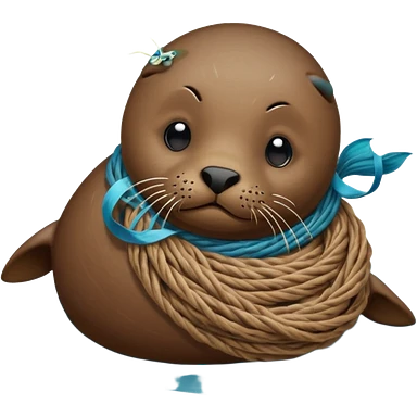 Realistic Seal Stauck with his head in a fishing yarn in the ocean, with plastic floating around emoji | AI Emoji Generator