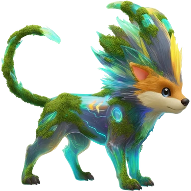 Sharp realistic mossy grassy elemental ivy floral detailed Colorful translucent luminescent glowing Trico-Sergal-Furret-Ferret-Wolverine-Vernid-furry-fursona-fusion-Fakemon-animal-hybrid-creature, full body emoji
