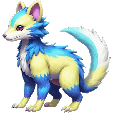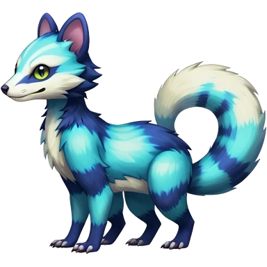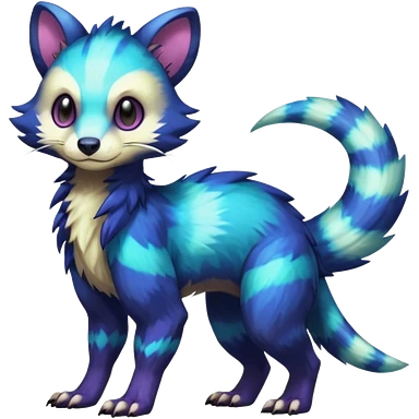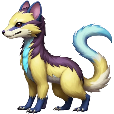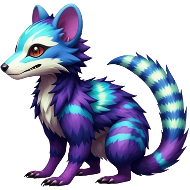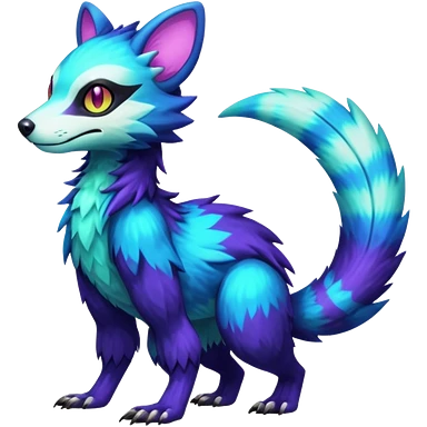 Colorful translucent luminescent neon-glowing Trico-Sergal-Furret-Ferret-Wolverine-Vernid-furry-fursona-fusion-Fakemon-animal-hybrid-creature, full body emoji