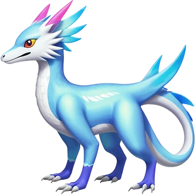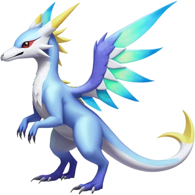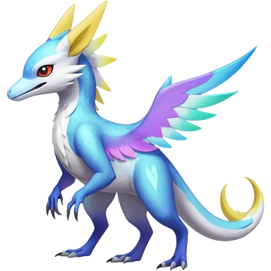Colorful scaly flurry iridescent shiny bioluminescent translucent luminescent neon pastel bright pale Latios-Sergal-Vernid-Silvally-Renamon-Zeraora-Bastet-Fakémon-hybrid-fusion-creature, full body emoji