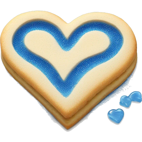 Realistic shortbread cookie in the shape of a heart with blue jelly middle filling and sprinkled powder sugar on top. emoji | AI Emoji Generator