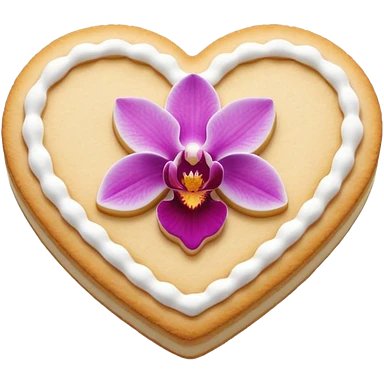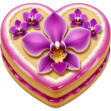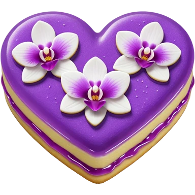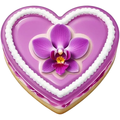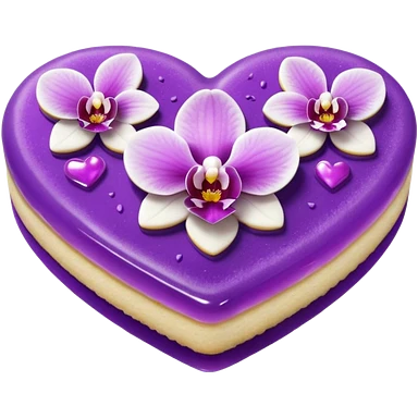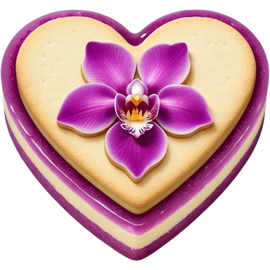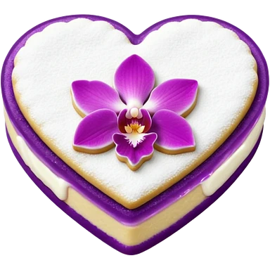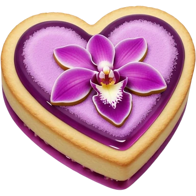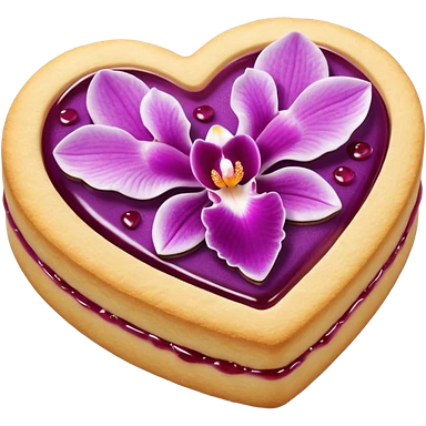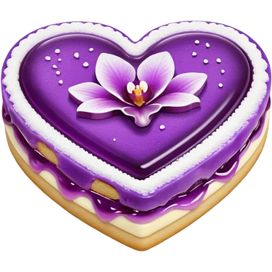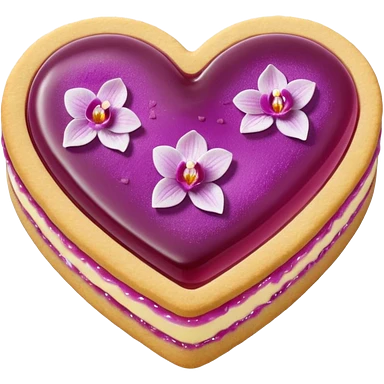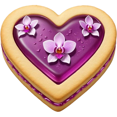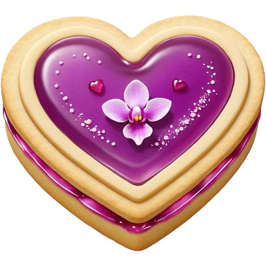 Realistic shortbread cookie in the shape of a heart with orchid purple color jelly middle filling and sprinkled powder sugar on top. emoji