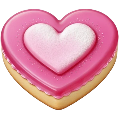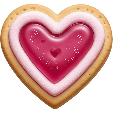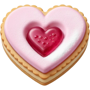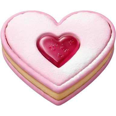 Realistic shortbread cookie in the shape of a heart with light margenta jelly middle filling and sprinkled powder sugar on top. emoji | AI Emoji Generator