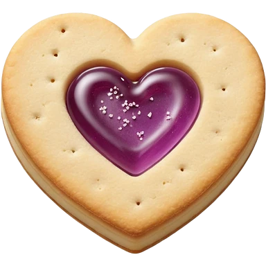 Realistic shortbread cookie in the shape of a heart with Pale Purple color jelly middle filling and sprinkled powder sugar on top. emoji | AI Emoji Generator