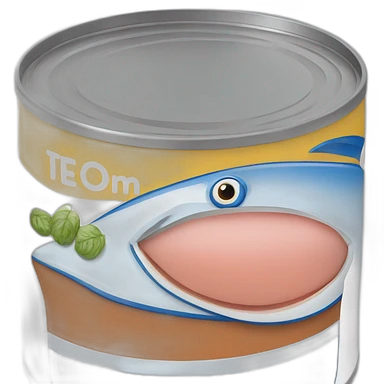 round can of tuna, metallic, closed or opened, tuna inside light pink to beige, moist and flaky, pull-tab lid, blank label in neutral tones, no text, 3D clean style, transparent background emoji