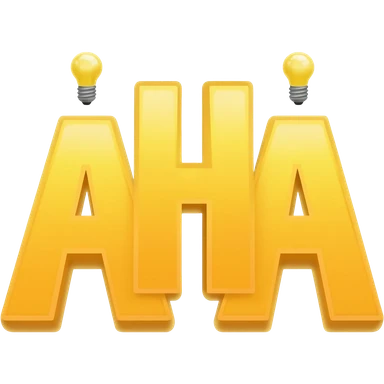 A bold yellow "AHA" with two light-bulbs on two sides emoji