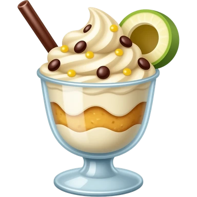 realistic -- tall parfait glass -- layered appearance alternating between whipped cream and crumbled Marie biscuit with cream and fruit emoji | AI Emoji Generator