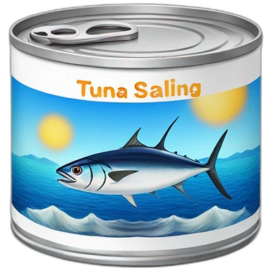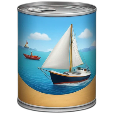 realistic tuna fish can sowing the blue shape of a sailling boat on a sea background emoji | AI Emoji Generator