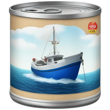Realistic can of tuna showing a boat emoji