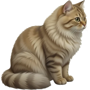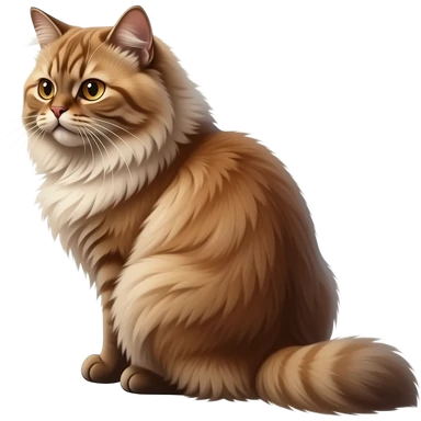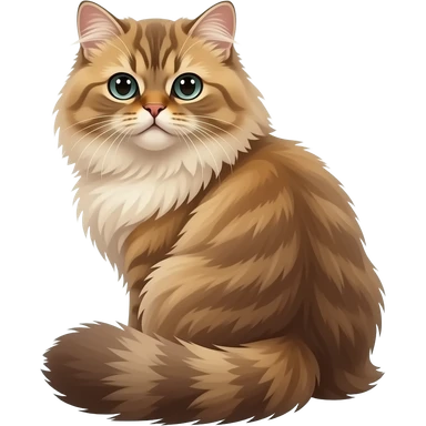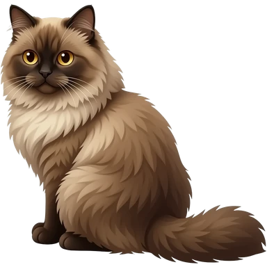 cinematic-[brown persian cat]-realistic-full-body-sitting-emoji,-tail-curled-playfully-around-its-paws,-head-tilted-dramatically,-fluffy-[brown]-fur,-simplified-yet-realistic-focused-features,-highly-detailed,-glowing-with-an-almost-sarcastic-glow emoji