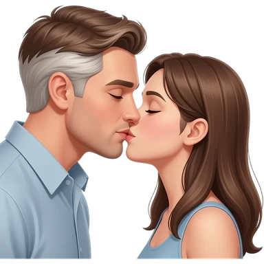 Realistic White brown hair man with brown beard kissing white brown hair girl emoji | AI Emoji Generator