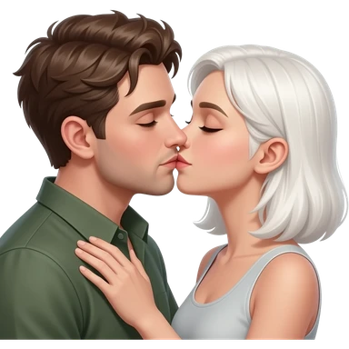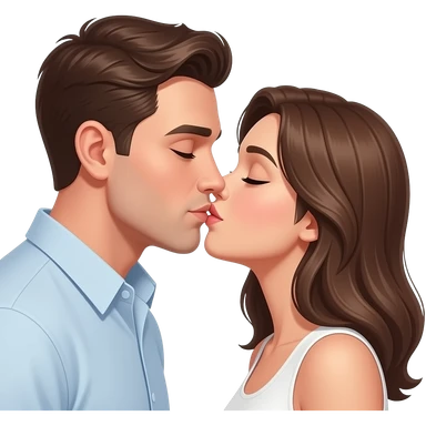 Realistic White man kissing white brown hair girl emoji