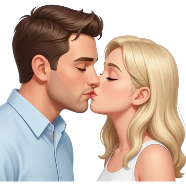 Realistic White man and white brown hair girl realistic kissing on the lips emoji