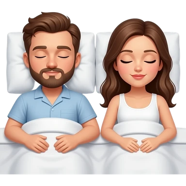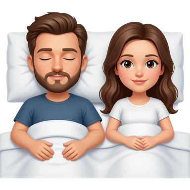 Realistic white man brown hair with beard sleeping in bed with white girl brown hair emoji