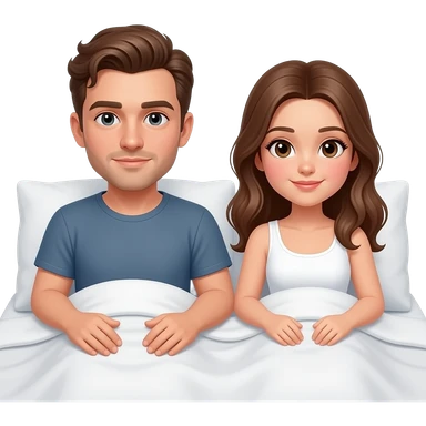 Realistic white man brown hair in bed with white girl brown hair emoji