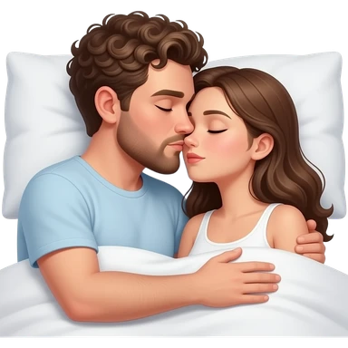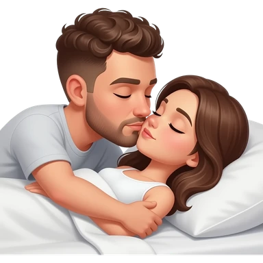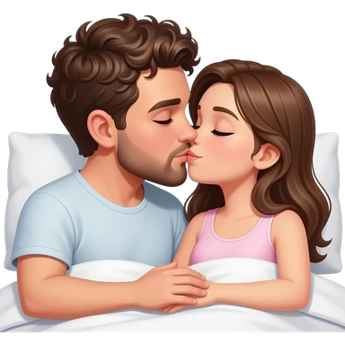 Realistic white man brown super short curly hair with beard kissing while sleeping in bed realistic white girl brown hair emoji