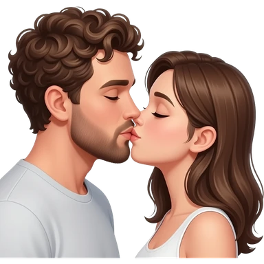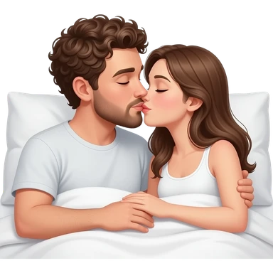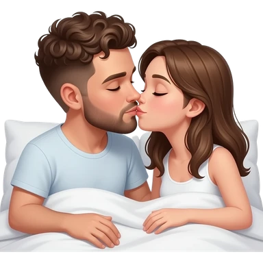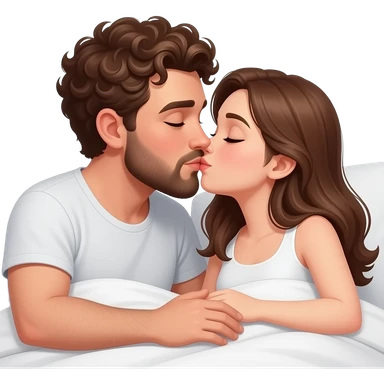 Realistic white man brown super short curly hair with beard kissing in bed realistic white girl brown hair emoji