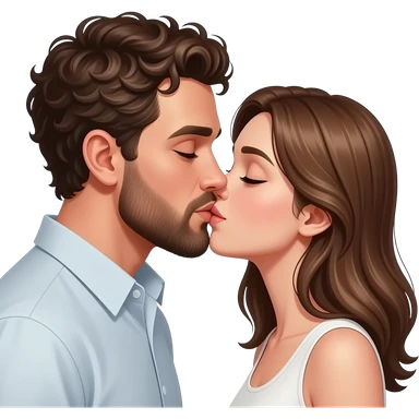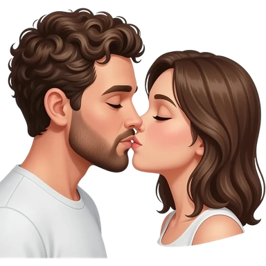 Realistic white man brown super short curly hair with beard kissing passionately realistic white girl brown hair emoji