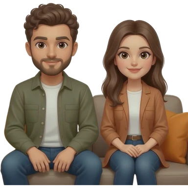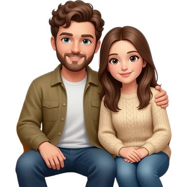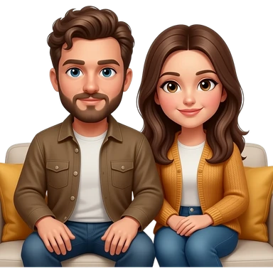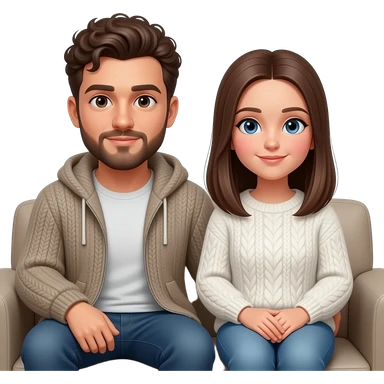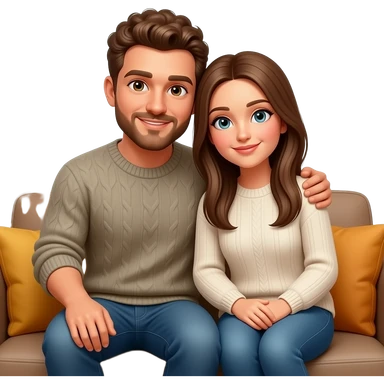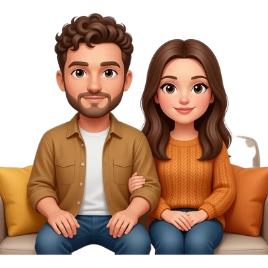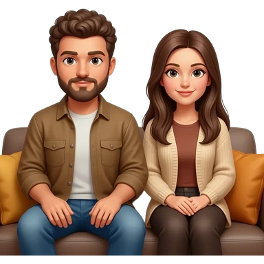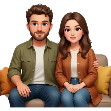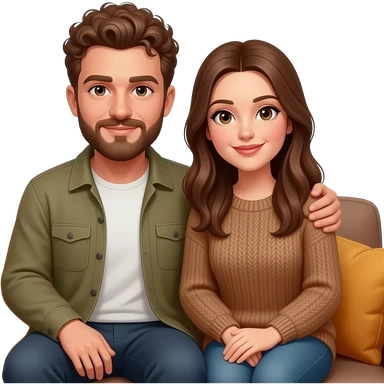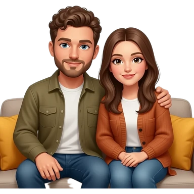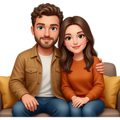 Realistic white man brown super short curly hair with beard being cozy with realistic white girl brown long straight hair on couch emoji