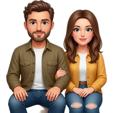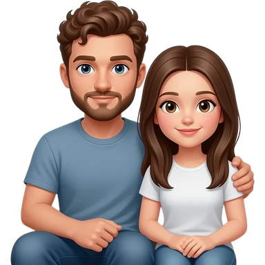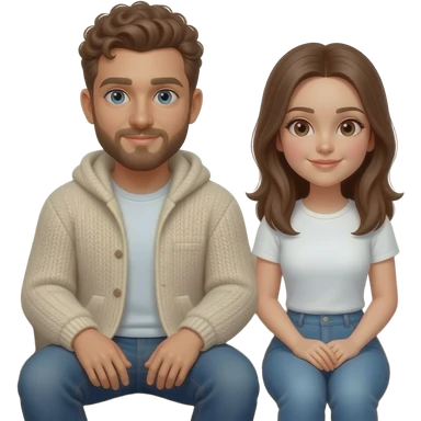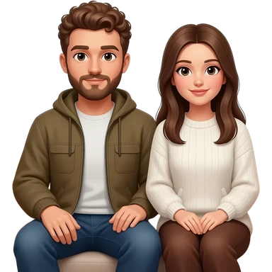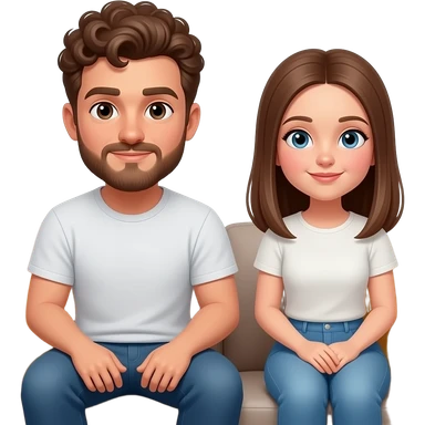 Realistic white man brown super short curly hair with beard being cozy with realistic white girl brown straight hair on couch emoji