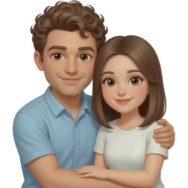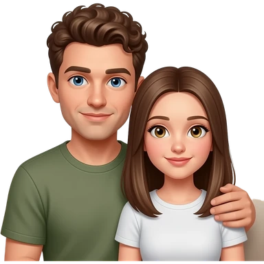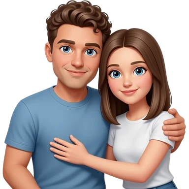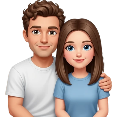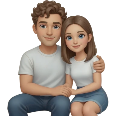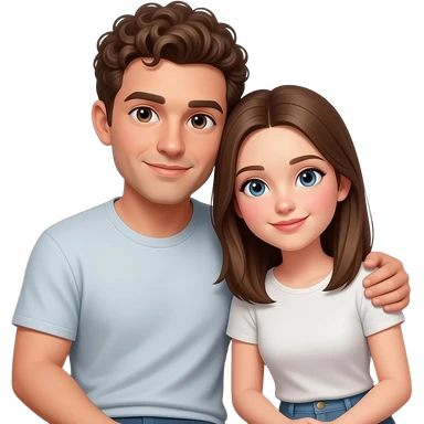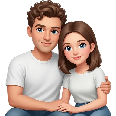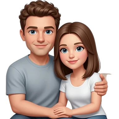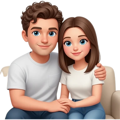 Realistic white man brown super short curly hair cuddling with realistic white girl brown straight hair on couch emoji