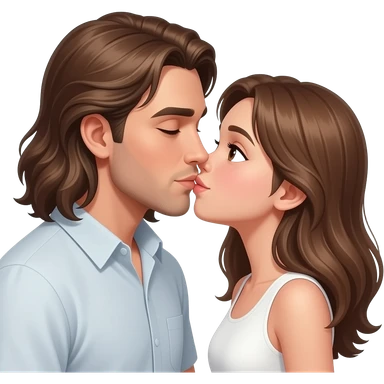 Realistic White with long brown hair man kiss white brown hair girl emoji | AI Emoji Generator