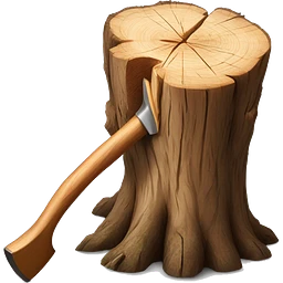 Realistic wood stump with axe sticking out of it emoji | AI Emoji Generator