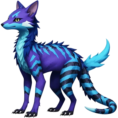 Realistic zig-zag-patterned striking indigo-violet-blue-cyan-gradiented with dark undertones, white underside, thunderous stormy edgy badass realistic Vernid-Sergal-Genet-Trico-species by LiLaiRa, full bodyemoji