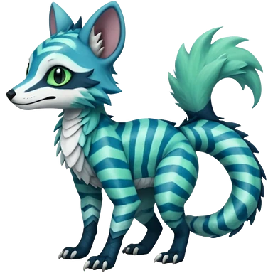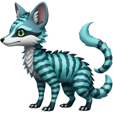 Realistic zig-zag-patterned striking indigo-violet-blue-cyan-gradiented with dark undertones, white underside, thunderous stormy edgy badass realistic Vernid-Sergal-Genet-Trico-species by LiLaiRa, full body emoji | AI Emoji Generator
