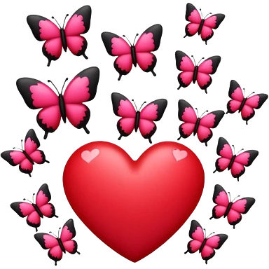 Really cool heart emoji for my sick girlfriend that’s mainly red & black. With just tiny hot pink butterflies on it. emoji | AI Emoji Generator