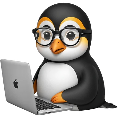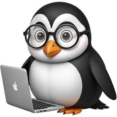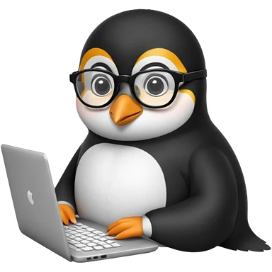 createa nice penguin and using his laptop emoji