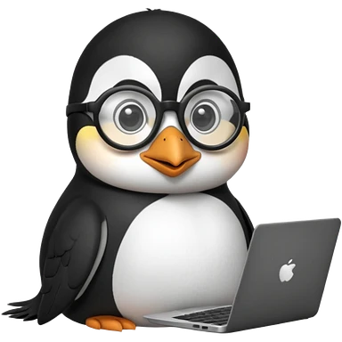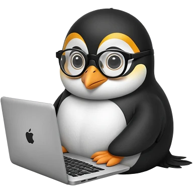 createa nice penguin and using his laptop make it like a developer emoji